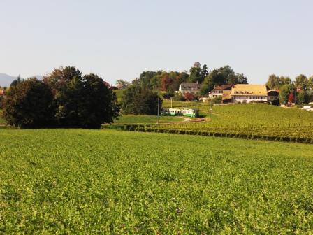 これはシャスラ。フランスではワインにならないのに、スイスでは繊細な味を出す。たぶん、土質の違いと言うのが一般的な見解。