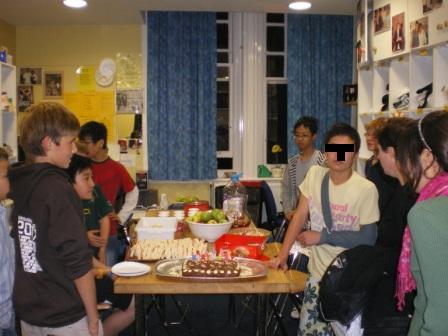 宿題時間後、寮母部屋に寮生が集まって簡単なパーテーが開かれました。